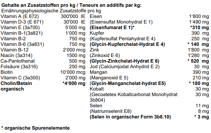 Analytische Bestandteile pro kg / Teneurs en constituants analytiques: