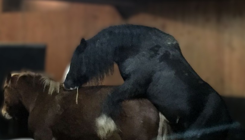 hengstige Wallache kennen keine "Vernunft" bezüglich Aufhocken und Gesundheit der Stute: ob sie krank ist, Arthrose oder Kissing Spines hat, ist total egal, auch die Grösse der Stute (Pony).
